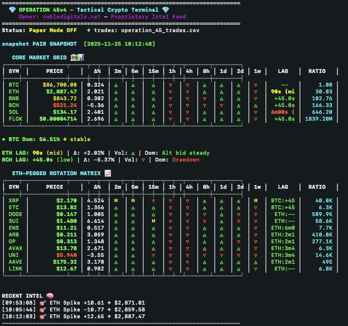 🔥 Whether you're scalping dominance shifts or precision sniping BCH lag trades, Operation 45 helps you trade like a machine. It’s not just a tool — it’s a transformation. You become a structure-first trader. A log-driven executor. A weapon.